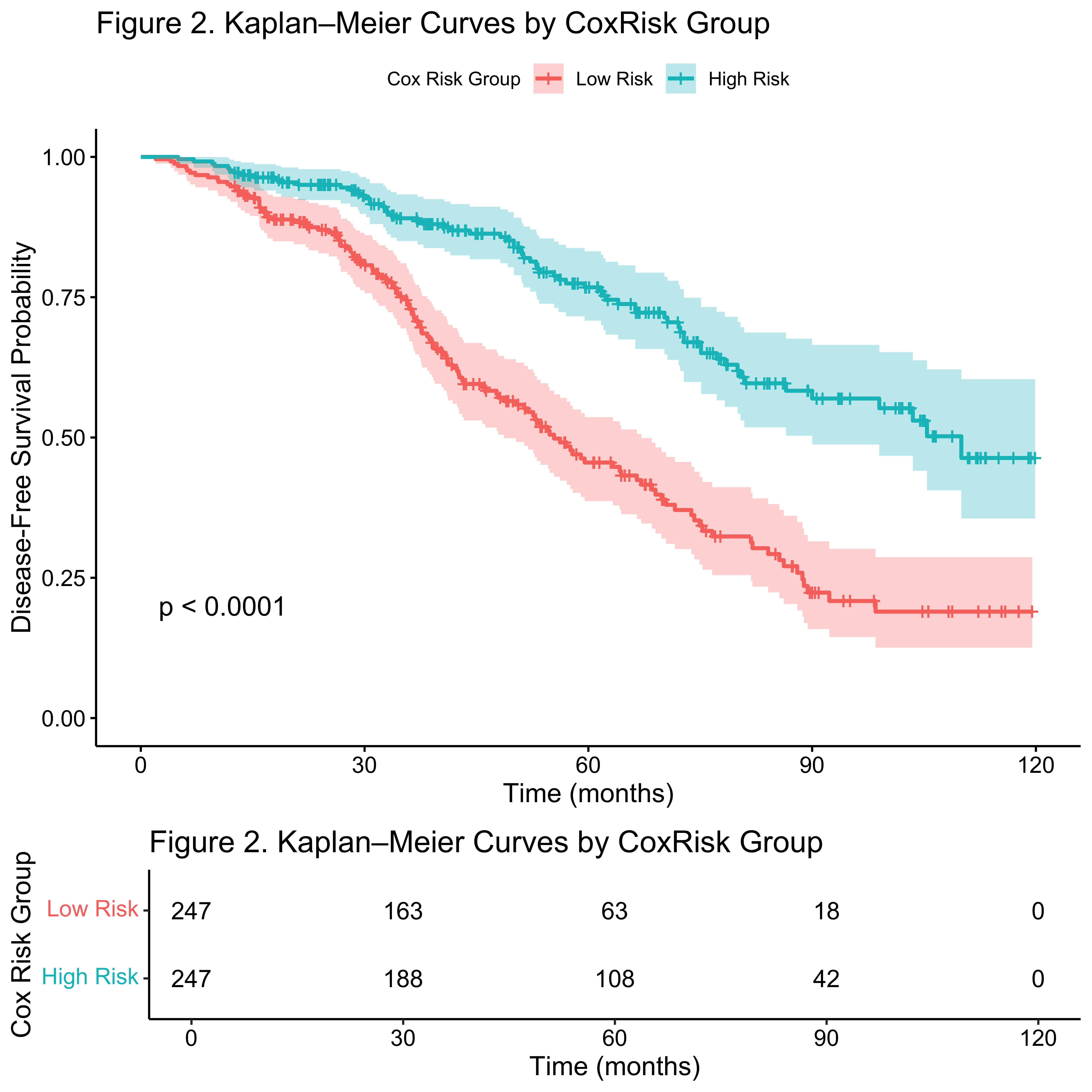 CoxRiskscore.Dichotomization: For binary classification, patients were stratified into “High risk” and “Low risk” groups based on whether their